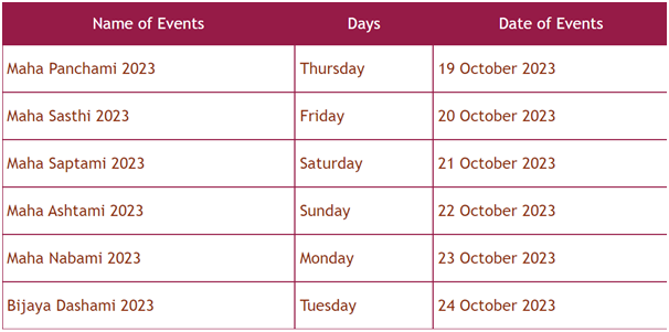 Durga Puja, also referred to as Durgotsava or Sharadotsava is an annual Hindu festival in South Asia that celebrates worship of the Hindu Goddess Durga. It refers to a 9 days festival followed by Bijoy Dashmi or Shubh Bijoya on the 10th day.(According to Hindu religious texts Durga Puja, including Chandi Path, should begin from the next day of Mahalaya Amavasya. Mahalaya is the most important day of Pitru Paksha, when Hindus pay homage to their ancestors, is not considered for starting any auspicious work.)